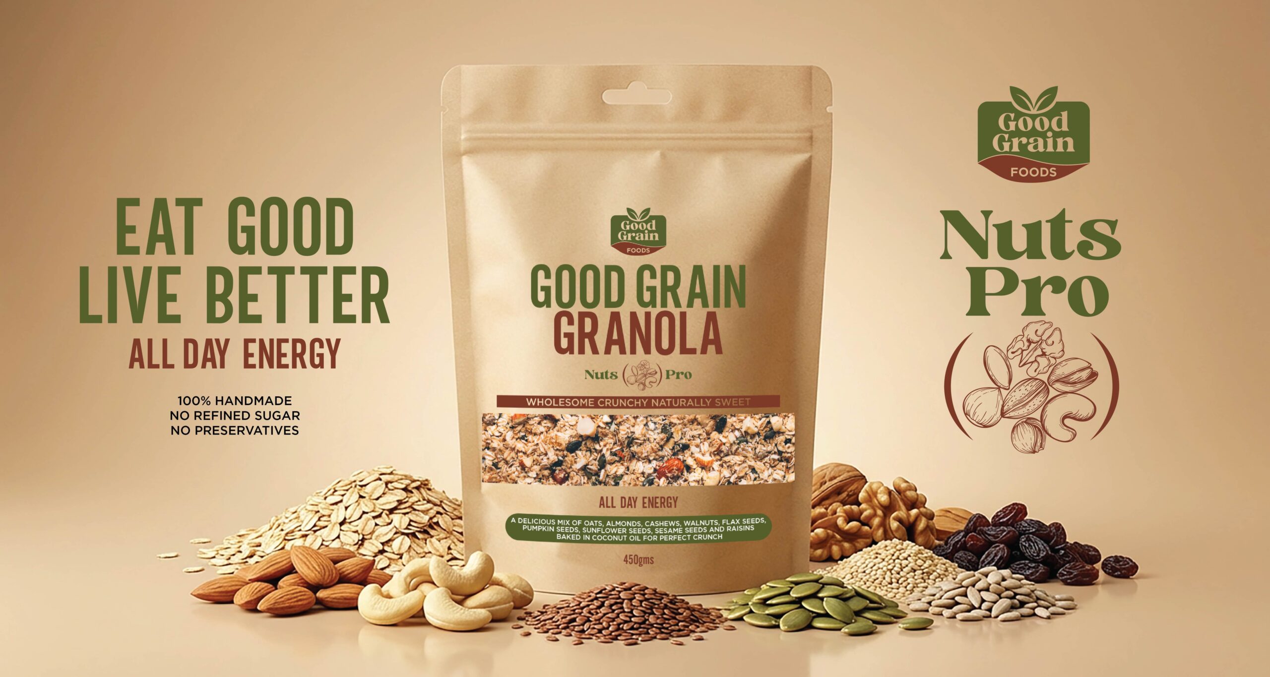 A protein-rich granola packed with wholesome oats, premium nuts, and seeds for long-lasting energy and satiety. Nut Pro is perfectly balanced for a crunchy, nourishing start to your day or a healthy snack anytime.